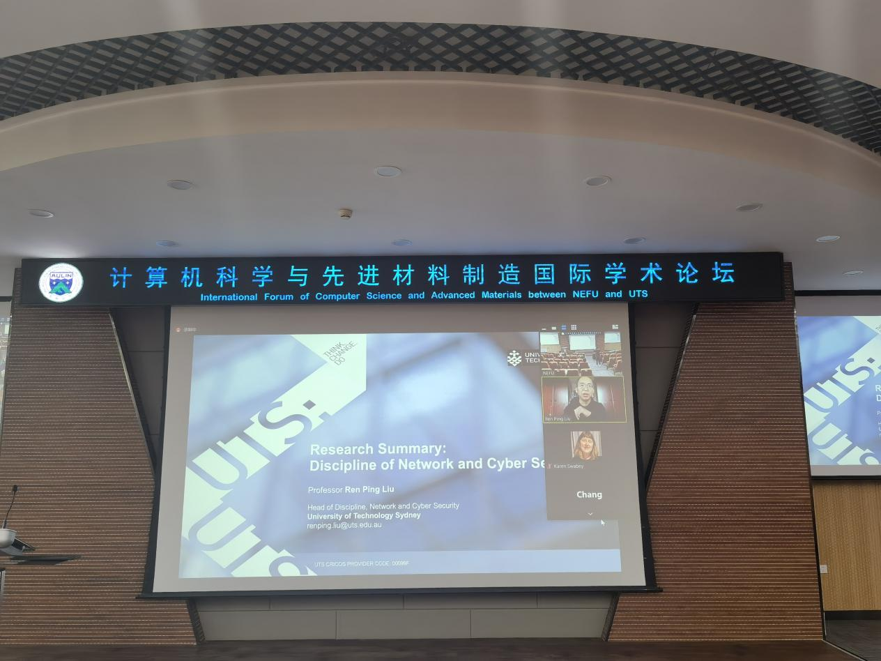 In order to welcome the 70th anniversary of the foundation of the university,Aulin College organized the International Academic Forum on Computer Science and Advanced Materials, a series of academic activities of "Climbing the Academic Summit". At 13:00 pm on June 2, Beijing time, the International Academic Forum on Computer Science and Advanced Materials between Northeast Forestry University and University of Technology Sydney (UTS), Australia, was successfully held in the 101 Lecture Hall of Aulin College. Four experts and scholars from the two universities and teachers from UTS International Department gathered in the cloud and brought a series of wonderful reports to the majority of teachers and students. The academic forum was presided over by Professor Liu Zhiming, Dean of the Aulin College.
