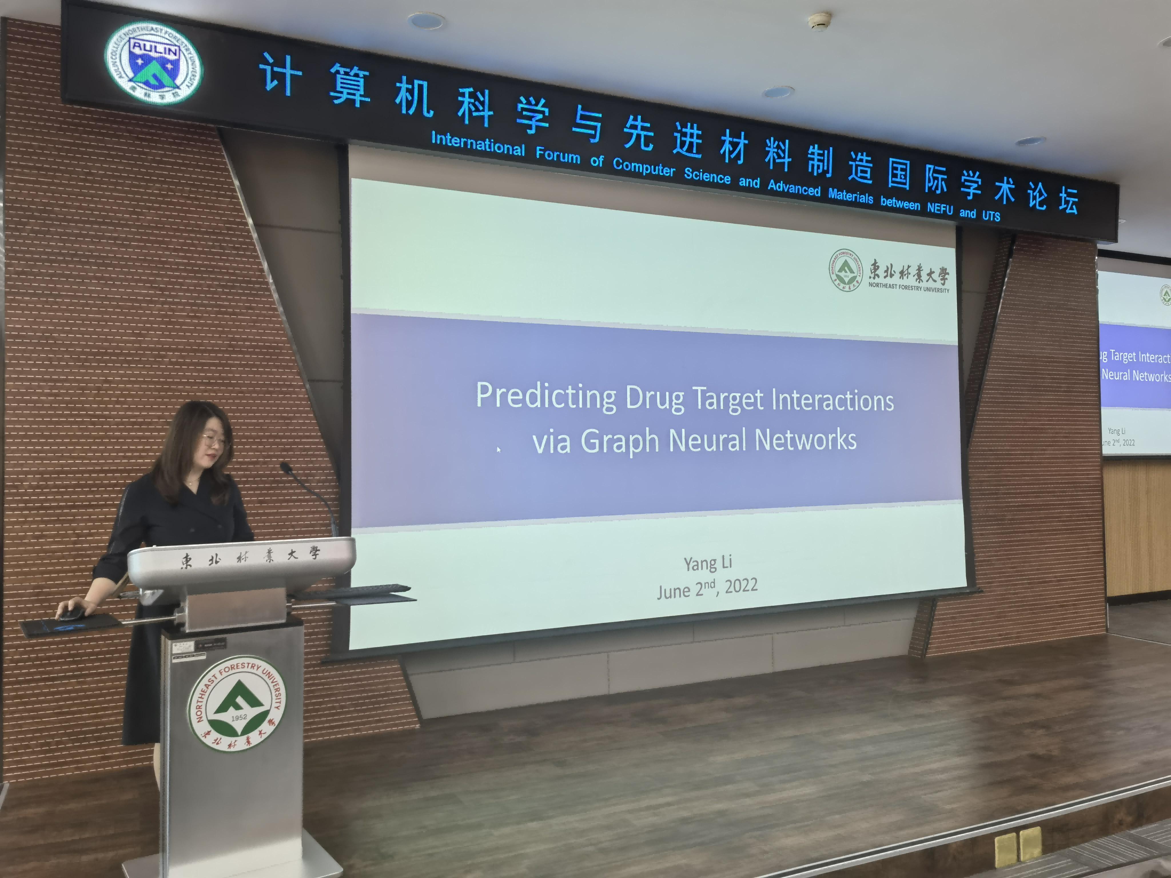 The academic report is divided into two topics. The topics of computer science are respectively addressed by Associate Professor Li Yang , School of Information and Computing Engineering of Northeast Forestry University and Dr. Bo Liu , School of Computer Science of University of Technology Sydney. The topics of advanced materials manufacturing are respectively addressed by Professor Huang Haibo, School of Materials of Northeast Forestry University and Professor Renping Liu , School of Engineering and Information Technology of University of Technology Sydney.