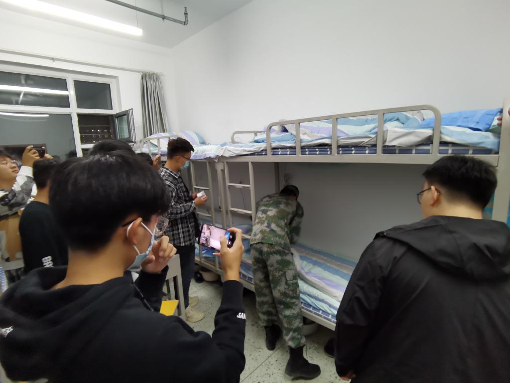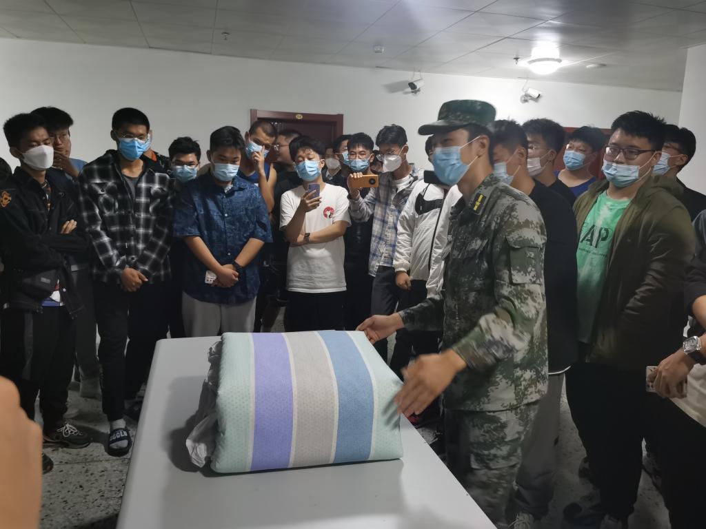 Influenced by COVID-19, the military training in the new term has not been carried out as scheduled. In order to let the freshmen further enhance their understanding, the college invited the retired college students in the national defense education service center of our university to come to the new dormitory, and conduct on-site teaching on the housekeeping of the dormitory. For freshmen, the folding of "tofu pieces" is a difficulty in housekeeping. In the teaching process, through the on-site teaching and specific guidance of the student instructor, the students were very enthusiastic, constantly asked for advice on housekeeping, and had a deeper understanding of bedroom housekeeping. The student instructors also told the freshmen about their college life, encouraged them to exercise themselves in their daily life and enhance their physique, and hoped that the freshmen could treat the college life with the attitude of "high standards and strict requirements". They should be strict with themselves, study seriously, make positive progress, and strive to be qualified college students in the new era regardless of military training.