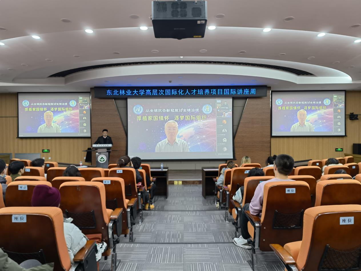 From November 25 to 28, the international lecture week of "innovative practice project of high-level international talent training" organized by Aulin college was held in conference room 101 of Aulin college. Mr. Song Yunfu, former director of the Foreign Affairs Department of the Ministry of health and former senior official of the World Health Organization, Wu Yugang, deputy director of the Shanghai International Training Center of the United Nations Institute for training and research, Hu Qiyuan, intern of the office of the Deputy Secretary General of the United Nations Headquarters in New York, Yang Fuwen, academic planner, were invited to give lectures, and relevant staff such as Liu Zhiming, dean of the Aulin college, Luo Wei, deputy secretary, attended the activities.
