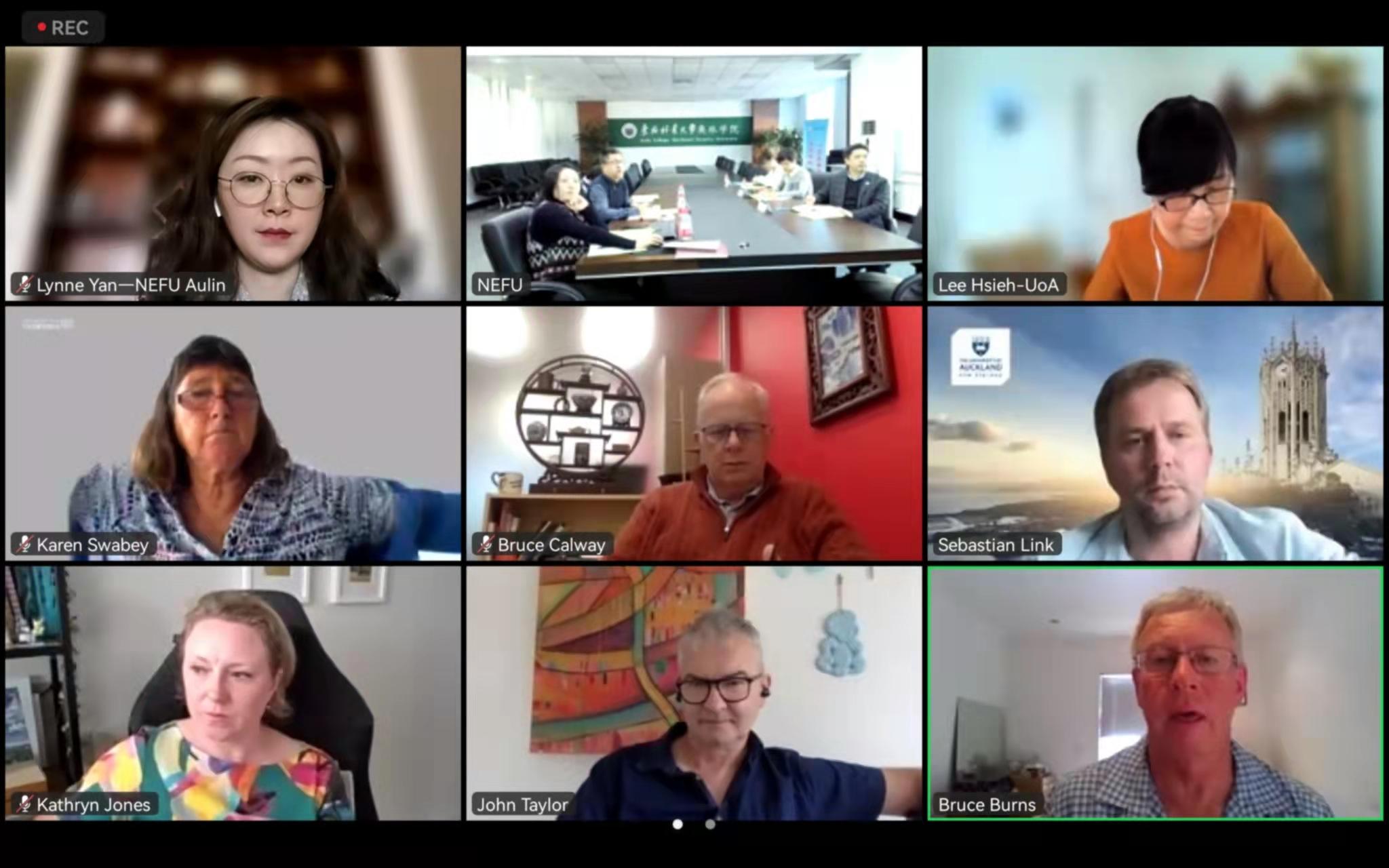 At 9 a.m. Beijing time on December 7, 2021, The Academic Affairs Board (AAB) meeting for the fall semester of 2021 was held by Aulin College of Northeast Forestry University and the Department of science of Auckland University. The meeting was held simultaneously in Harbin, Beijing, Auckland, New Zealand and Melbourne, Australia by remote video. The AAB meeting was used as the "daily teaching communication meeting mechanism" of Aulin college It is held every six months to timely feed back the problems existing in teaching, continuously improve teaching design, steadily improve teaching effect, and ensure the continuous improvement of talent training quality.