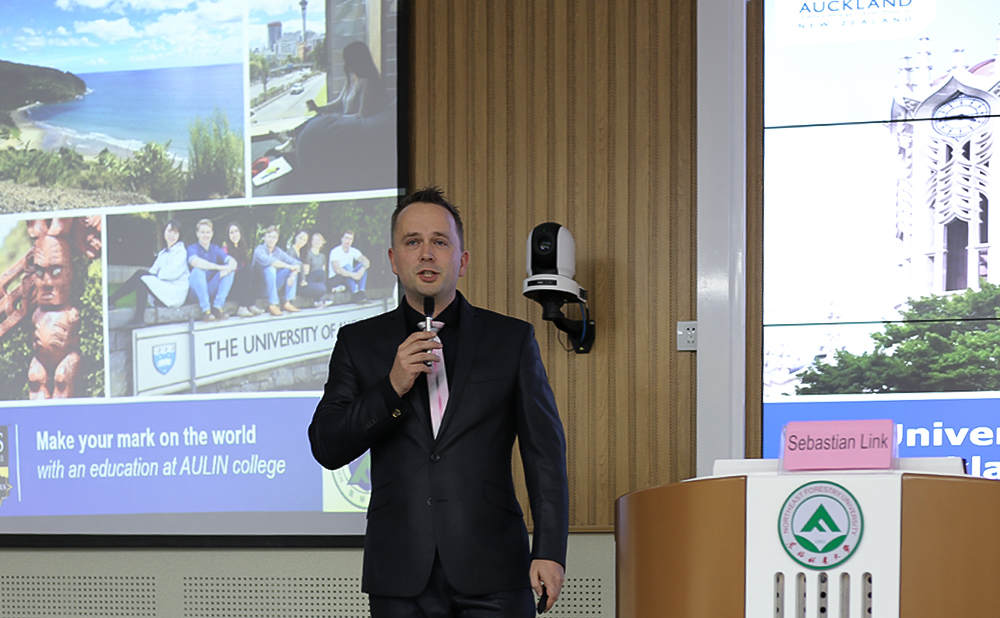 Professor Sebastian Link from the Faculty of Science of the University of Auckland gave a presentation on the theme of Leaving Your Own Mark in the World by the Aulin College. Professor Sebastian Link has confirmed that everyone has countless opportunities by his own stories and introduced the beautiful and livable New Zealand and the prestigious University of Auckland.