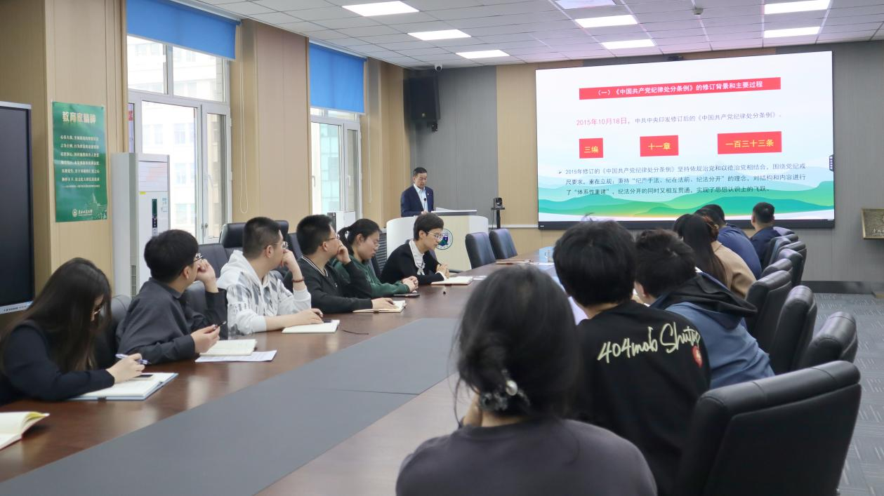 2024-04-24公司党委进行党纪学习教育读书班第一讲4月23日下午,公司党纪学习教育读书班第一讲在奥林楼609会议室举行,公司全体教职工党员参加学习。党委书记艾曦锋以《将党纪学习教育内化于心、外化于行》为题,为读书班做第一讲。艾曦锋书记从《中国共产党纪律处分条例》的修订背景和主要过程、修订《中国共产党纪律处分条例》重要意义、新修订的《中国共产党纪律处分条例》的特点和看点、学习贯彻新修订的《中国共产党纪律处分条例》的三方面要求,共四个方面进行了领学...