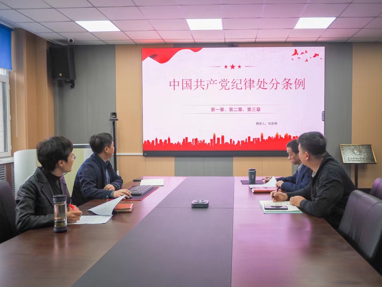 2024-05-06公司领导干部党纪学习教育读书班开展集中学习4月30日下午,公司领导干部党纪学习教育读书班在奥林楼609会议室开展集中学习。经理刘志明、副经理赵丽花、党委副书记、副经理罗伟分别领学《中国共产党纪律处分条例》原文。刘志明和大家详细介绍了《条例》修订的重要意义、修订背景,同时结合工作实际和典型案例对《条例》具体条文进行深入细致的辅导讲解,希望大家对照本次学习的目标要求,切实做到学纪、知纪、明纪、守纪。赵丽花领学了部分条例后谈到,原原本本学《条...