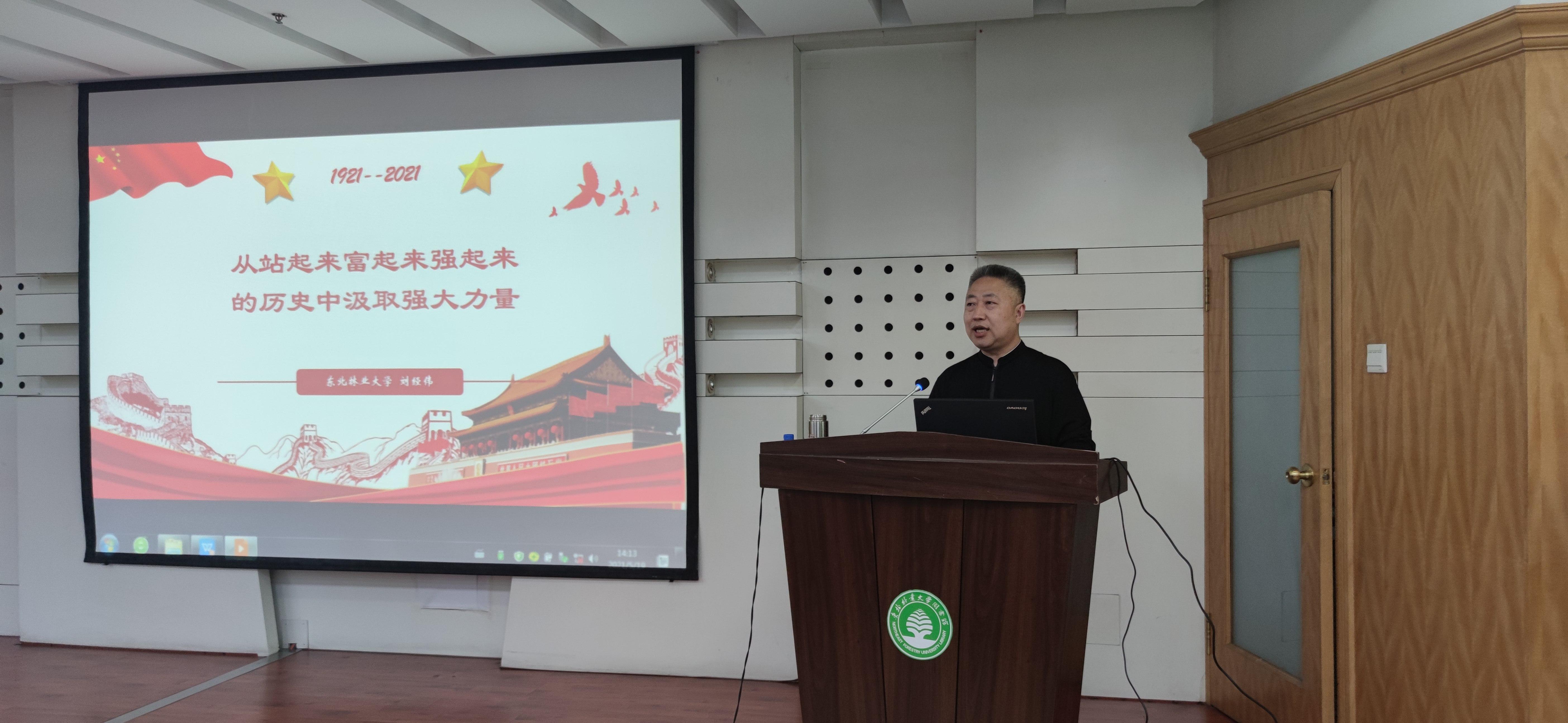为贯彻落实习近平总书记在党史教育动员大会上的重要讲话精神,深入推进党史学习教育,进一步引导党员干部、教职工学史明理、学史增信、学史崇德、学史力行,5月19日下午在图书馆A楼多功能厅,图书馆、国际交流公司、伟德国际victor19463个基层党组织联合举办党史学习教育宣讲报告会。特别邀请公司党史学习教育宣讲团团长、马克思主义公司党委书记刘经纬做题为《从站起来富起来强起来的历史中汲取强大精神力量》宣讲报告。三个单位的领导班子成员、全体党员、教职工参加了此次学习。报告会由图书馆党总支书记魏晓慧主持。