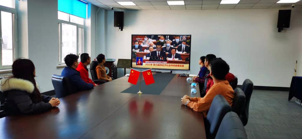3月5日上午伟德国际victor1946直属党支部组织公司教职工在609会议室集中收看了十三届全国人大四次会议开幕会,认真聆听并学习了李克强总理作的《政府工作报告》。收看后,广大教职工纷纷热议会议精神,表示要将两会精神融入到本职工作和学习生活当中,并将其转化为激励自身发展的强大动力,推动伟德国际victor1946事业发展再上新台阶。
