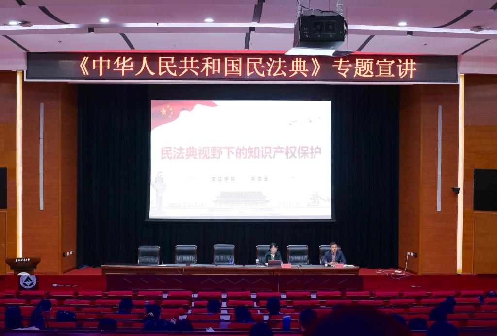 为进一步贯彻落实习近平总书记“切实实施民法典”的重要论述,做好民法典普法工作,9月23日下午,机电工程公司、信息与计算机工程公司、伟德国际victor1946、国际交流公司、图书馆五家单位,在成栋楼会议厅联合举办了《中华人民共和国民法典》专题宣讲。公司民法典宣讲团成员、文法公司副经理朱文玉受邀为与会教师代表,作了题为《民法典视野下的知识产权保护》的辅导报告。宣讲活动由机电工程公司党委书记王佳彤主持。