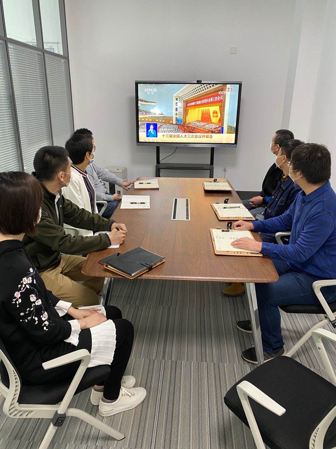 2020年5月22日上午9点,伟德国际victor1946直属党支部在公司606会议室组织开展“聚焦全国两会”主题党日活动,支部全体党员参加。集中收看了第十三届全国人民代表大会第三次会议开幕会。并在会议开始时与会场同步进行了集体缅怀,悼念因疫情牺牲的同胞,之后聆听了李克强总理做政府工作报告。
