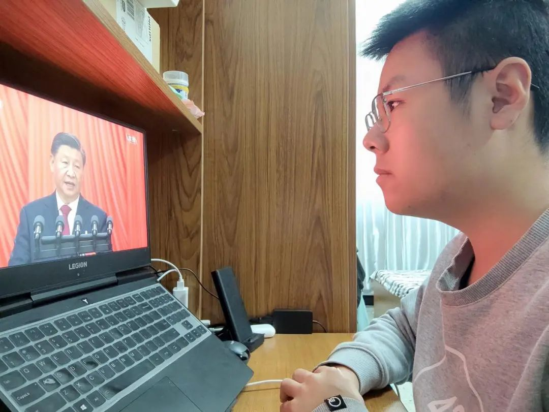 大家怀着激动的心情,聚精会神地收看开幕会实况直播。开幕会上,习近平总书记代表中国共产党第十九届中央委员会向大会作报告。“新时代的伟大成就是党和人民一道拼出来、干出来、奋斗出来的”“中国共产党为什么能,中国特色社会主义为什么好,归根到底是马克思主义行,是中国化时代化的马克思主义行”“党用伟大奋斗创造了百年伟业,也一定能用新的伟大奋斗创造新的伟业”……报告鼓舞人心,师生心潮澎湃,不时报以热烈的掌声。