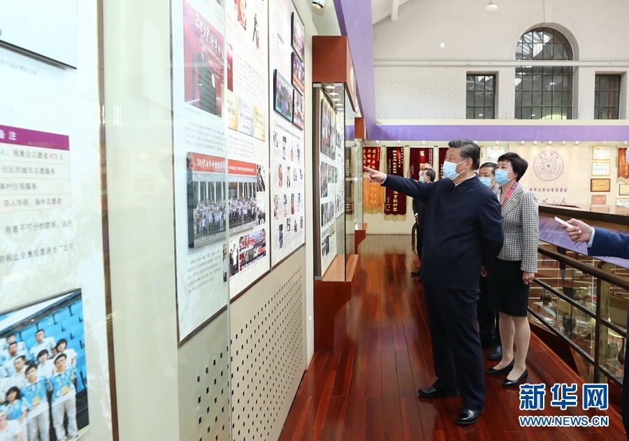 清华大学主楼二层,展示了公司近年来重点教学科研成果。习近平听取了关于增强自主创新能力、助力世界主要科学中心和创新高地建设、提高人文社会学科教育研究水平等情况介绍,对清华大学取得的成绩给予充分肯定。习近平指出,要坚持中国特色社会主义教育发展道路,充分发挥科研优势,增强学科设置的针对性,加强基础研究,加大自主创新力度,并从我国改革发展实践中提出新观点、构建新理论,努力构建中国特色、中国风格、中国气派的学科体系、学术体系、话语体系。