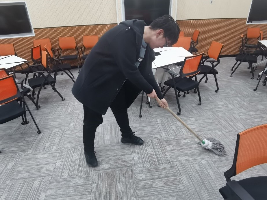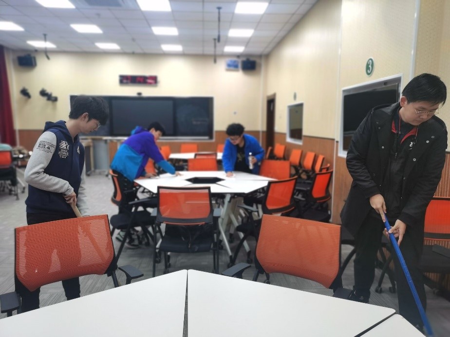 同学们积极参与其中,有序分工协作,以小组为单位进行了区域划分,并利用课余时间将所分担区域进行了彻底的清扫,对课桌椅进行擦拭、摆放整齐,同时也对教室内进行了全面消毒,为大家能够在干净、卫生的环境中学习提供了保障。