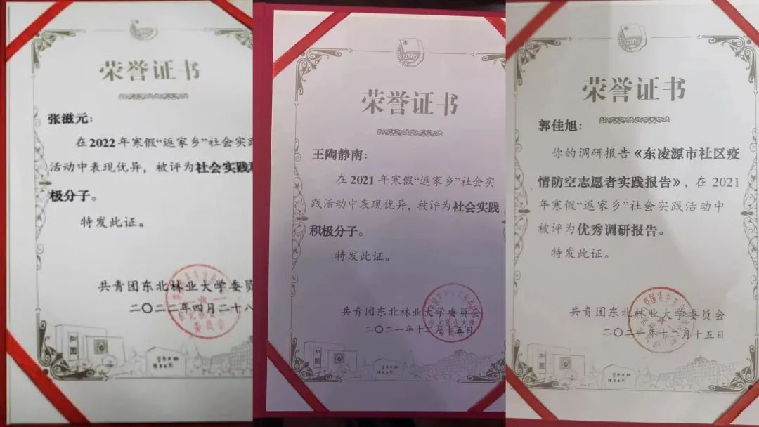 同学们在2022年河南疫情期间,主动在抗疫一线上,积极工作,获得优秀防疫志愿者,河南省民权县优秀志愿者等荣誉称号;在北京冬奥会上,勤劳能干,获得优秀志愿者的称号;在公司核酸志愿服务等日常志愿活动中贡献丰富,获优秀志愿者荣誉称号。积极参与龙江志愿服务,班级总体志愿服务时长超过2000小时,多名同学获得“社会实践积极分子”荣誉称号。