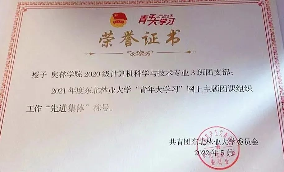 团支部学习氛围强烈,积极进取。支部中1人获得国家奖学金,1人获得牵手奖学金,2人获得优秀员工特等奖学金,11人获得校级奖学金,1人获得中国软件杯全国三等奖,1人获得数学建模省级二等奖,5人获得成栋杯三等奖,1人获得成栋杯二等奖,1人获得黑龙江省老员工网络安全挑战赛省级二等奖和美赛S奖,3人获得第五届全国高校商务英语竞赛决赛二等奖,1人参加了哈尔滨工业大学第三期国际组织人才培训营并顺利毕业。