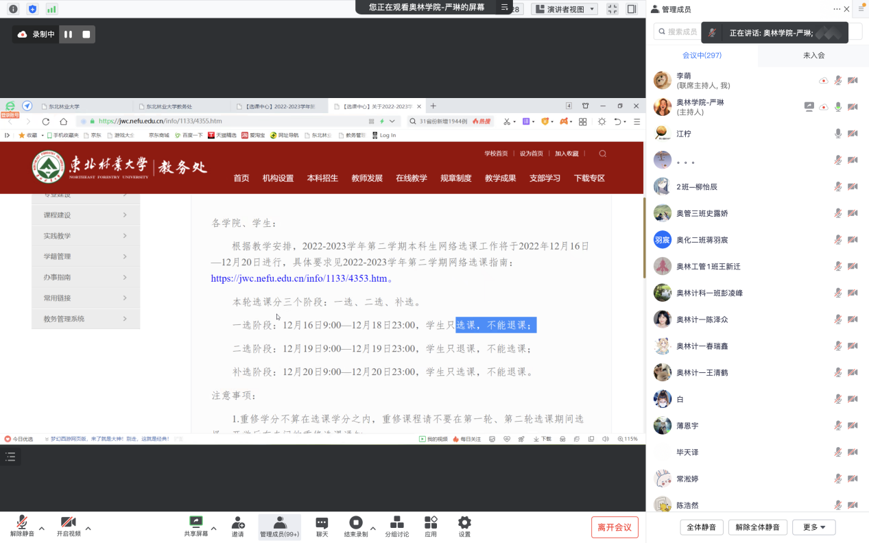 会上,严琳老师就公司《2022-2023学年第二学期网络选课指南》和《关于2022-2023学年第二学期网络选课的通知》进行了详细解读,结合各专业培养方案的学分要求、课程设置,包括课程类别、课程性质、通识课程和专业选修课程的开设情况进行了介绍,重点强调了各专业不同的选课要求、课程特点和选课过程中容易出现的问题。