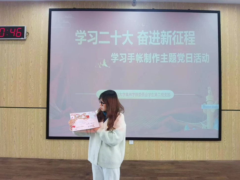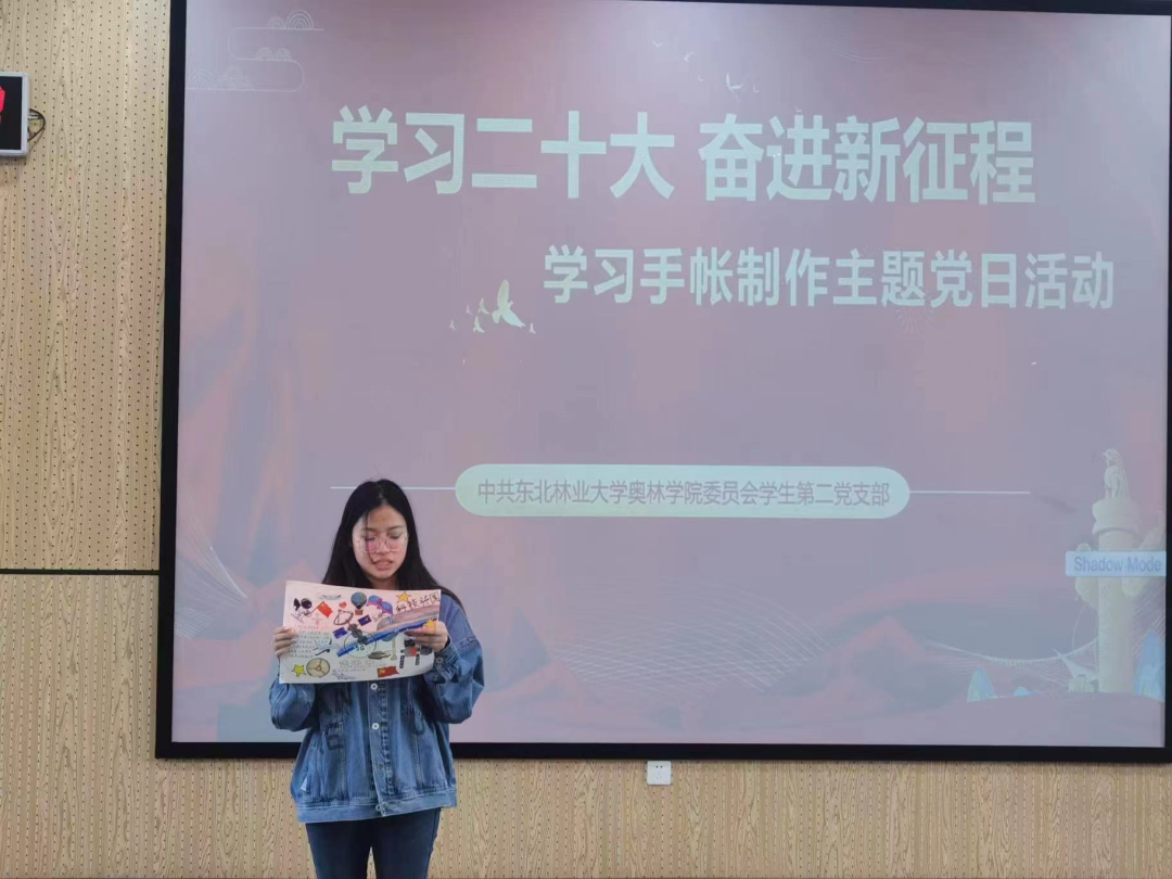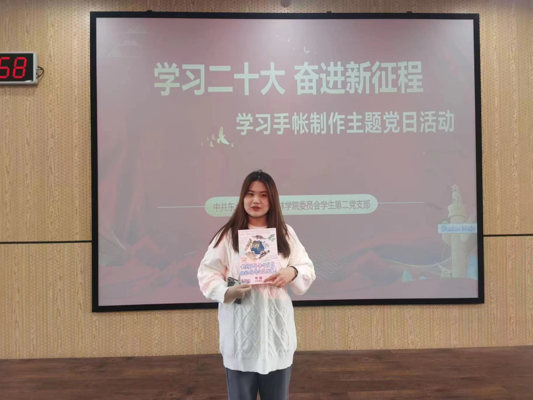 党日活动结束后,支部党员鲁怡凡同志谈到:“通过本次活动,我们进一步学习了党的二十大报告,并结合切身体会用图文结合的原创手帐表达了自己的感受与学习心得,进一步坚定红色信仰,砥砺初心使命。在未来的学习生活中我们定当更加努力地将学习的成果内化于心、外化于行。”