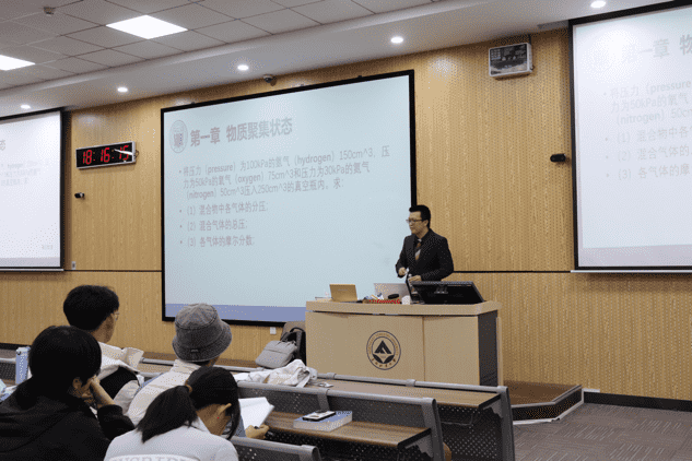 李麟学长先对现代化学基础这门学科进行了简单介绍,并且介绍了化学专业的难度和未来就业发展方向。然后又把同学们所欠缺的化学知识进行了补充,介绍了玻义尔定律,元素周期率和原子结构进行了讲解,将未来可能会遇到的化学例题进行了系统性的预习。