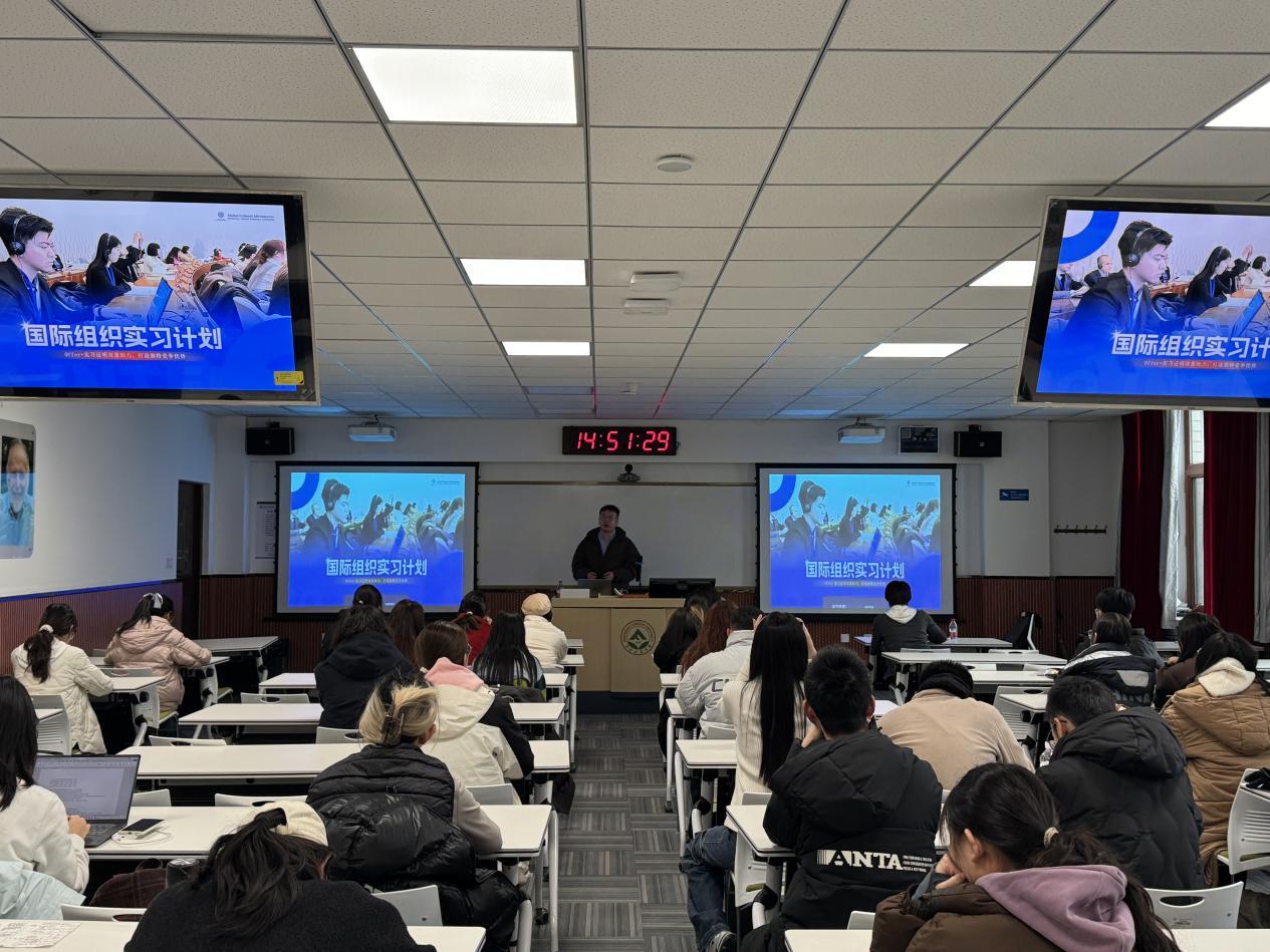 随后,项目宣讲人王玉鑫老师为基地班学员做了公司2025年首场基地班实习实践项目线下宣讲会,王老师介绍了2025年暑期欧洲实地实习项目的往届项目概况、相关国际组织情况、项目要求及学员收获等。
